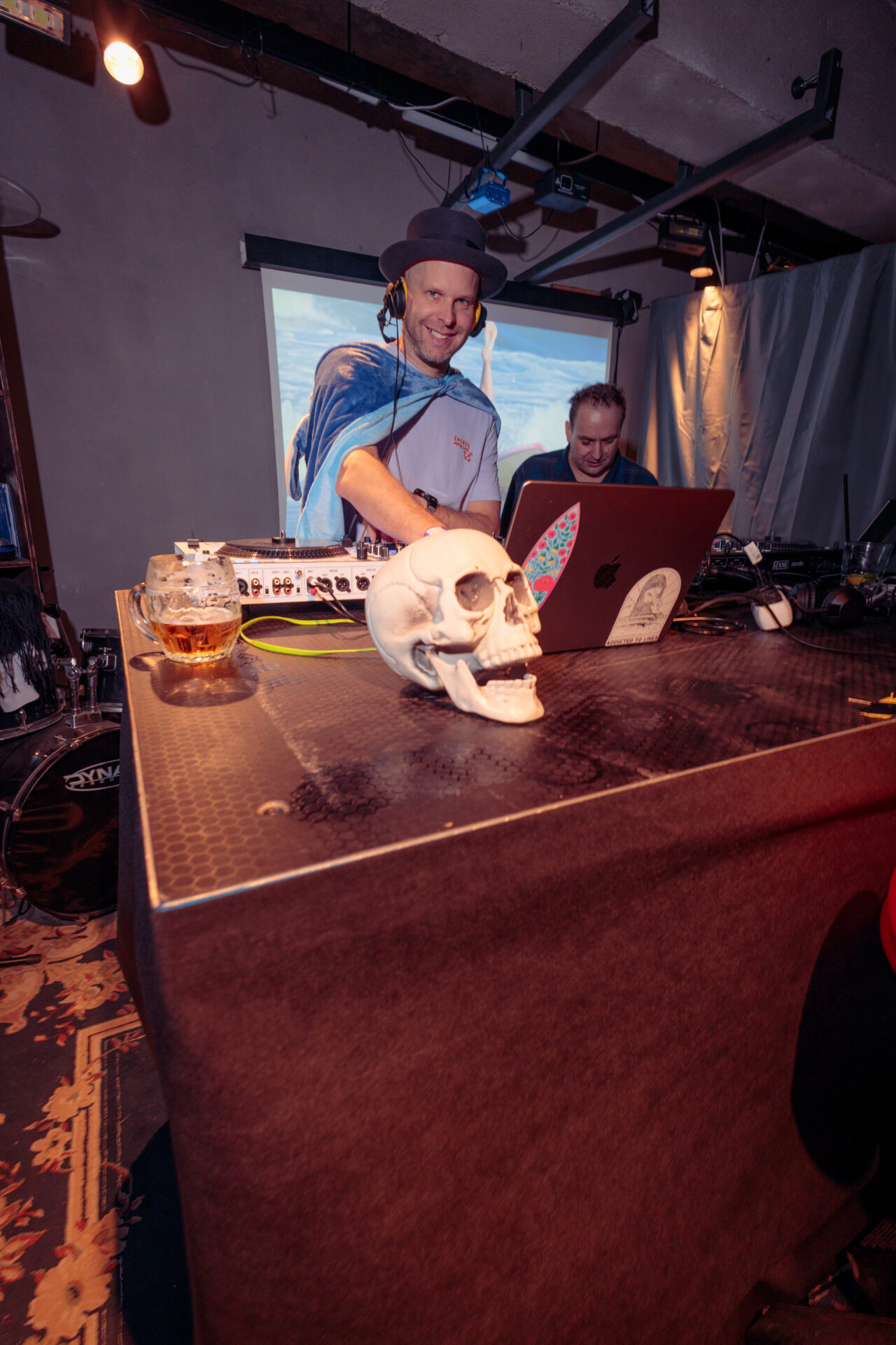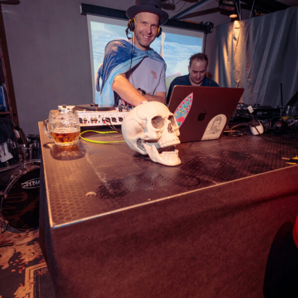 Na parketu se mísili surfující duchové, upíři, Zloba se svými pomocníky, Amy Winehouse i tradiční dávka bláznivých převleků, které ke Swelloweenu prostě patří. DJs Akvamen a Majk roztočili vlnu, na které se vezli všichni – od kostlivců až po mořské panny s Jägermeisterem v ruce.